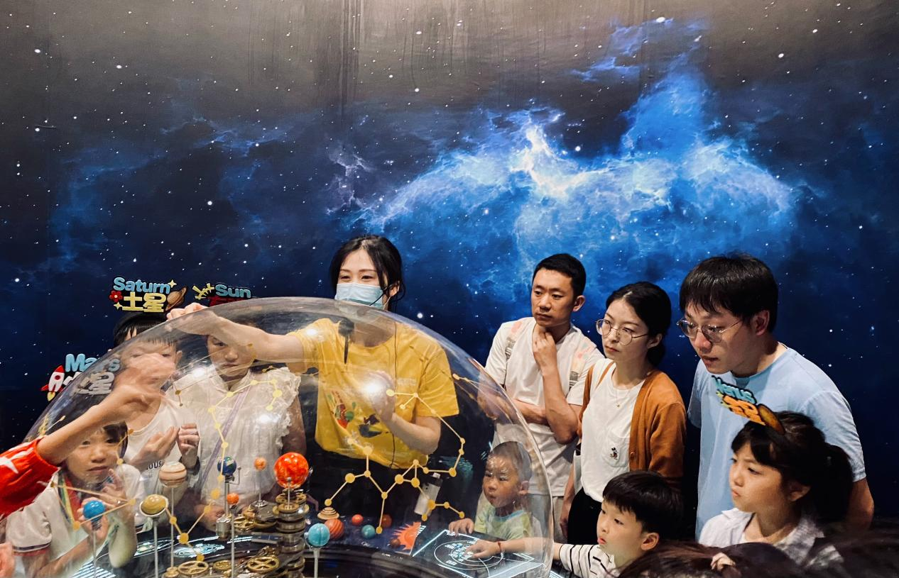 如果地球像番茄一样大,那么其它的七颗行星会是什么水果?面临下潜深度增加带来的超强水压,“蛟龙号”是如何硬核“抗压”的?深海具有高压、无光、低温和寡营养的环境特征。在这样的极端环境中,是否有生命存在?省科技馆精品讲解服务精彩继续,科普辅导员们穿梭在人潮涌动的常设展区,以通俗化、幽默化、故事化、场景化的方式,带领大家“上天入海”,深度体验展品,探寻自然的奥秘,感悟科技工作者矢志创新、勇攀高峰的精神。