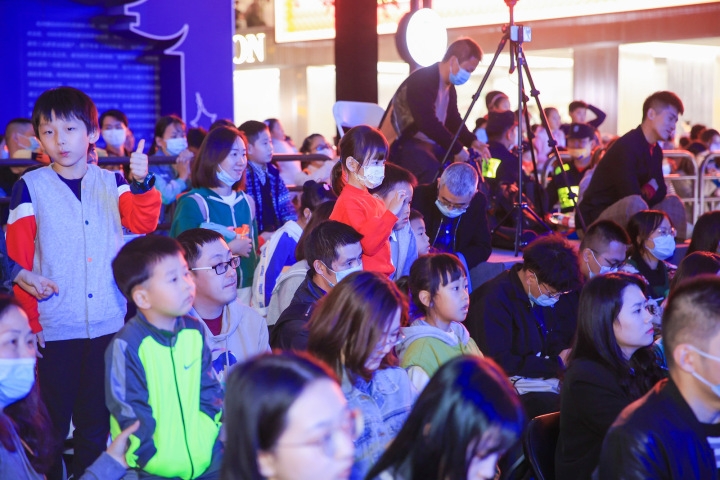 小朋友们挤满了前排位子,甚至在舞台前席地而坐,大朋友们也看得津津有味,围栏外挤挤挨挨都是人。让小朋友们兴奋尖叫的科学实验秀,让人担心自己手速不够快的“双减”科普大礼包,浙江人眼中的十大科学事件,大健康时代的精准健康研究……一个多小时,精彩不断的“科学奇妙Yeah!”,带着现场观众,还有直播平台上78.7万观众,一起触摸科学的奇妙。