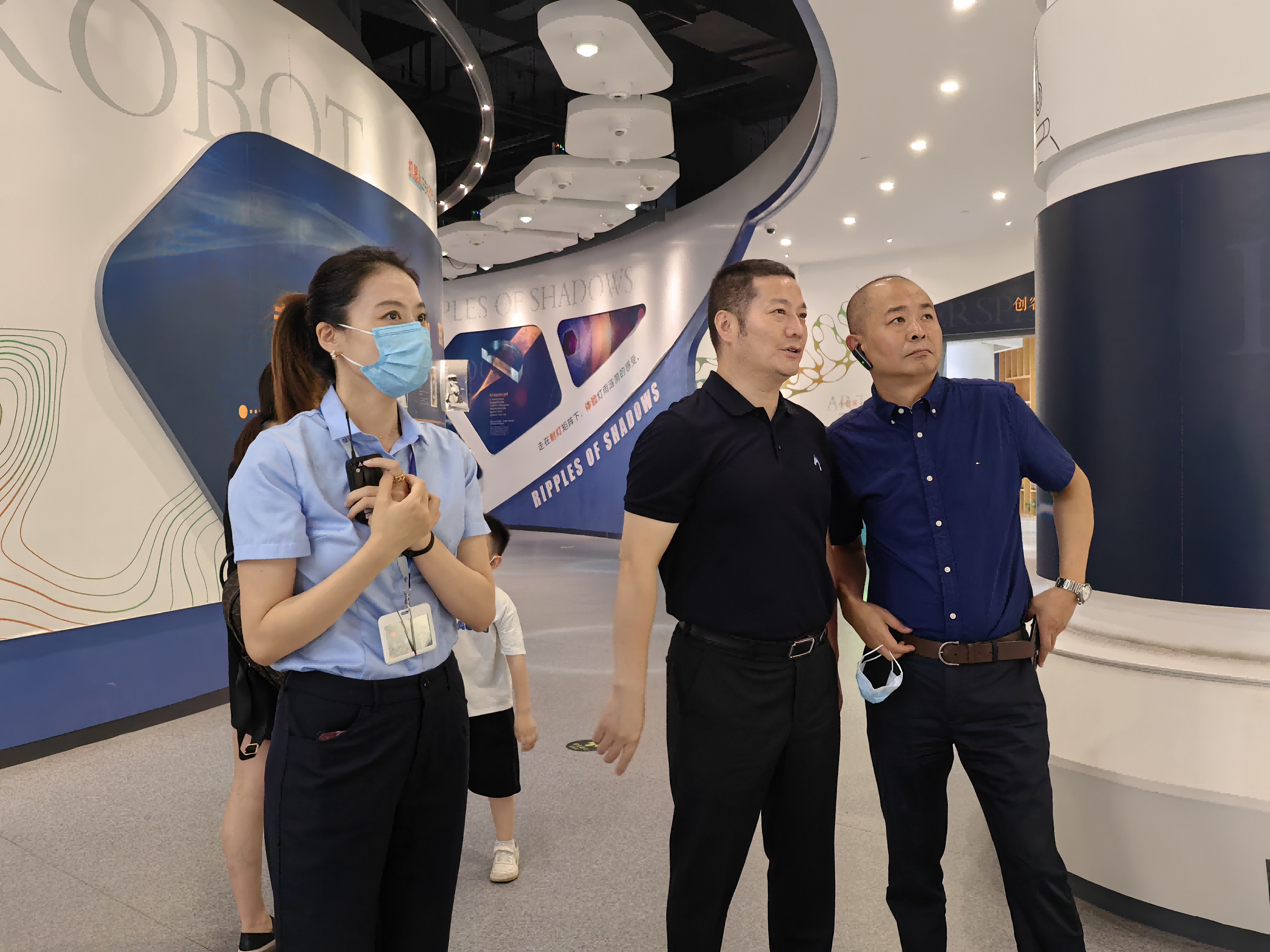 经戈一行在讲解员的引导、讲解下重点参观了我馆一至三层常设展区,并对月面基地、空间站、高新科技等展区产生了浓厚的兴趣,对我馆的科学的展厅规划与丰富的教育活动给予了高度评价。讲解过程中,经戈深入了解我馆总体建设情况、设计规划、体制机制建设、运营运作方式、日常业务管理等一系列经验和做法,调研展区主题定位及展品设置情况,深入学习了解科技馆内部运行管理及建设的成功经验。