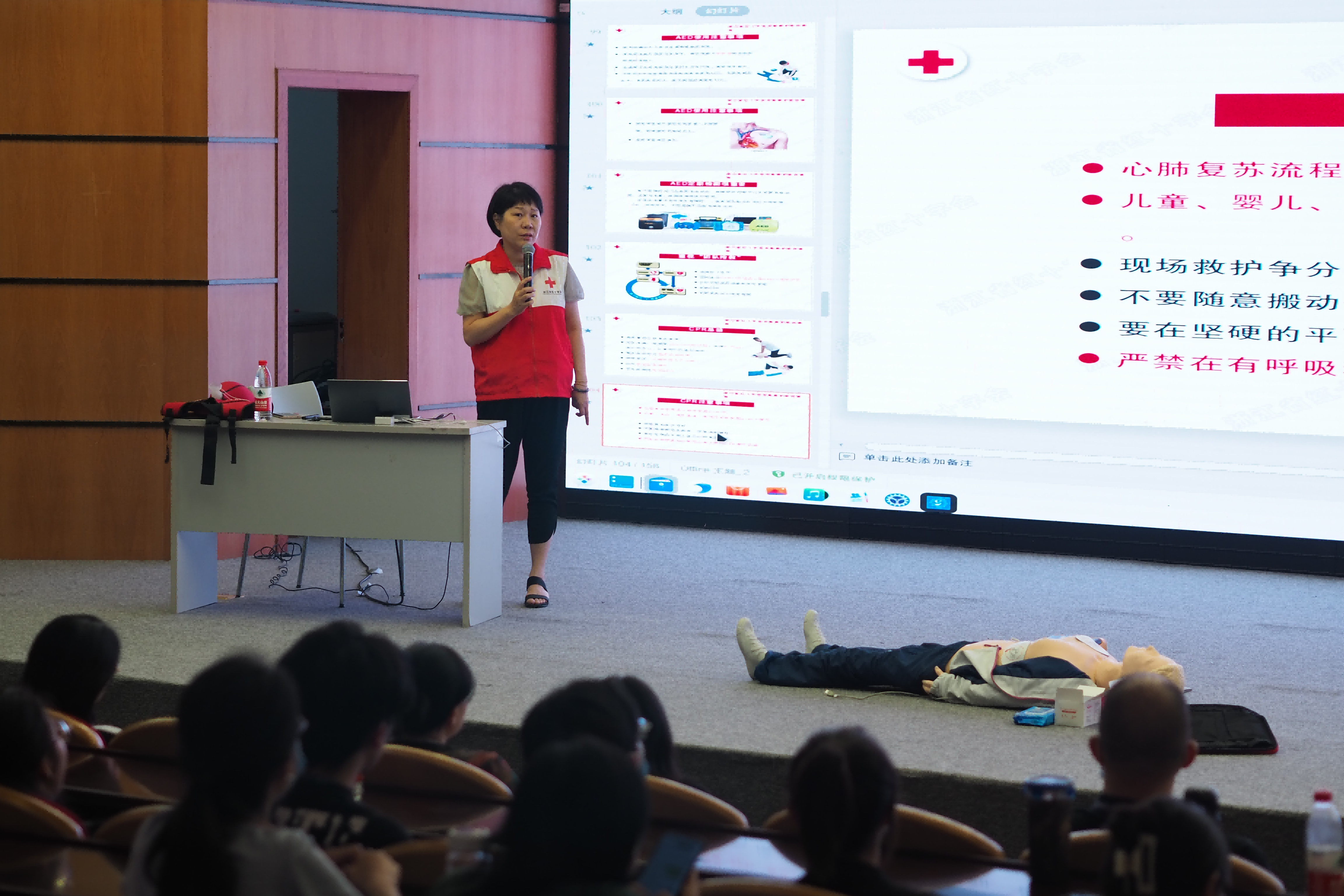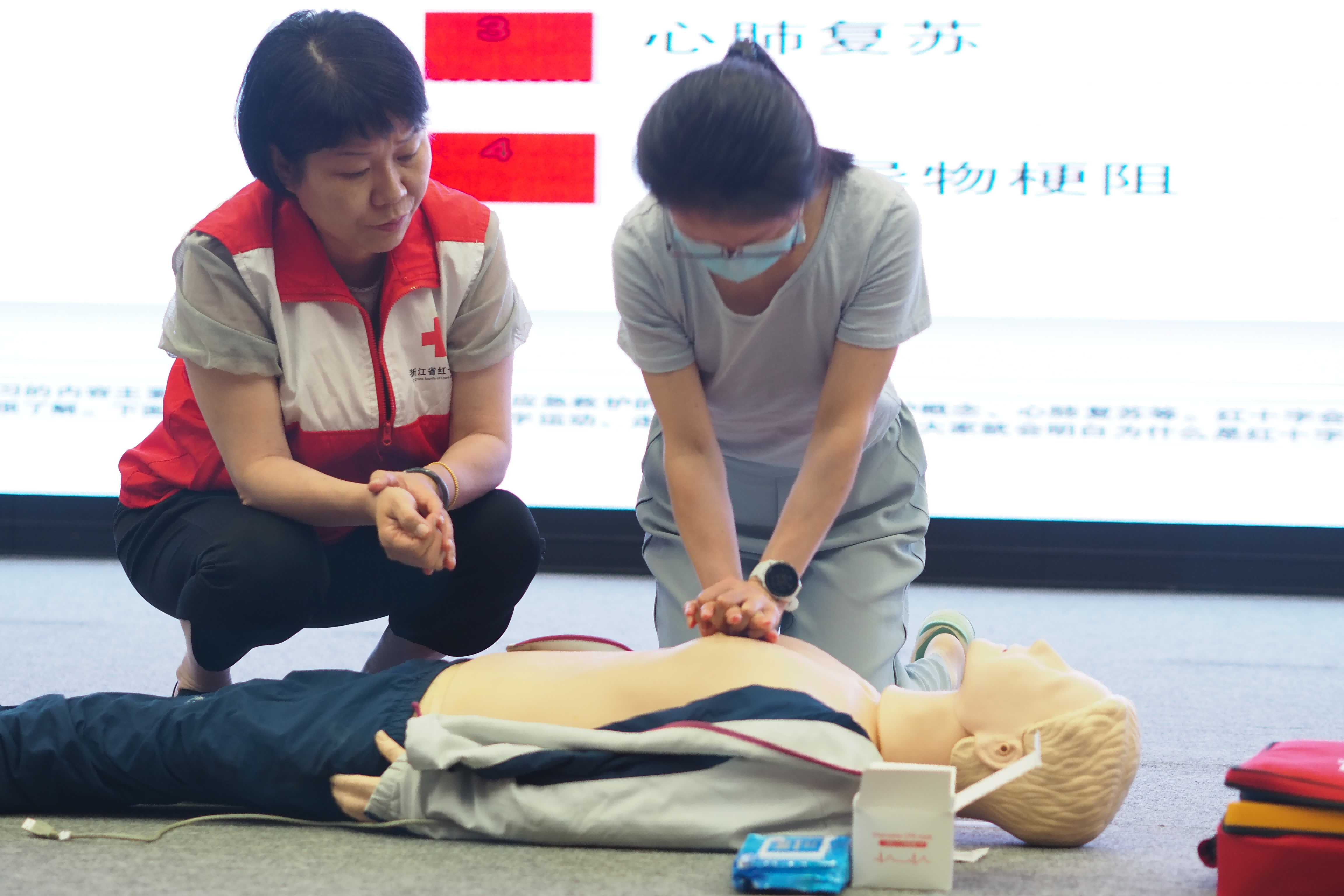 亚洲规模最大的综合性运动会——亚运会即将在杭州拉开帷幕,为进一步增强我馆职工的安全意识,提高应急救护能力,以更高的水平做好亚运服务保障工作,浙江省科技馆邀请了浙江省红十字一级应急救护师、副主任医师陈国伶进行应急救护培训授课,采取理论讲解和实操演练相结合的方式进行,围绕心肺复苏、海姆立克急救法和急救常识等应急救护的核心知识与技能展开培训。