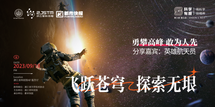 9月18日,也就是下周一,在浙江省科技馆还会有一场重磅的“科学有观”活动——《飞跃苍穹 探索无垠》。