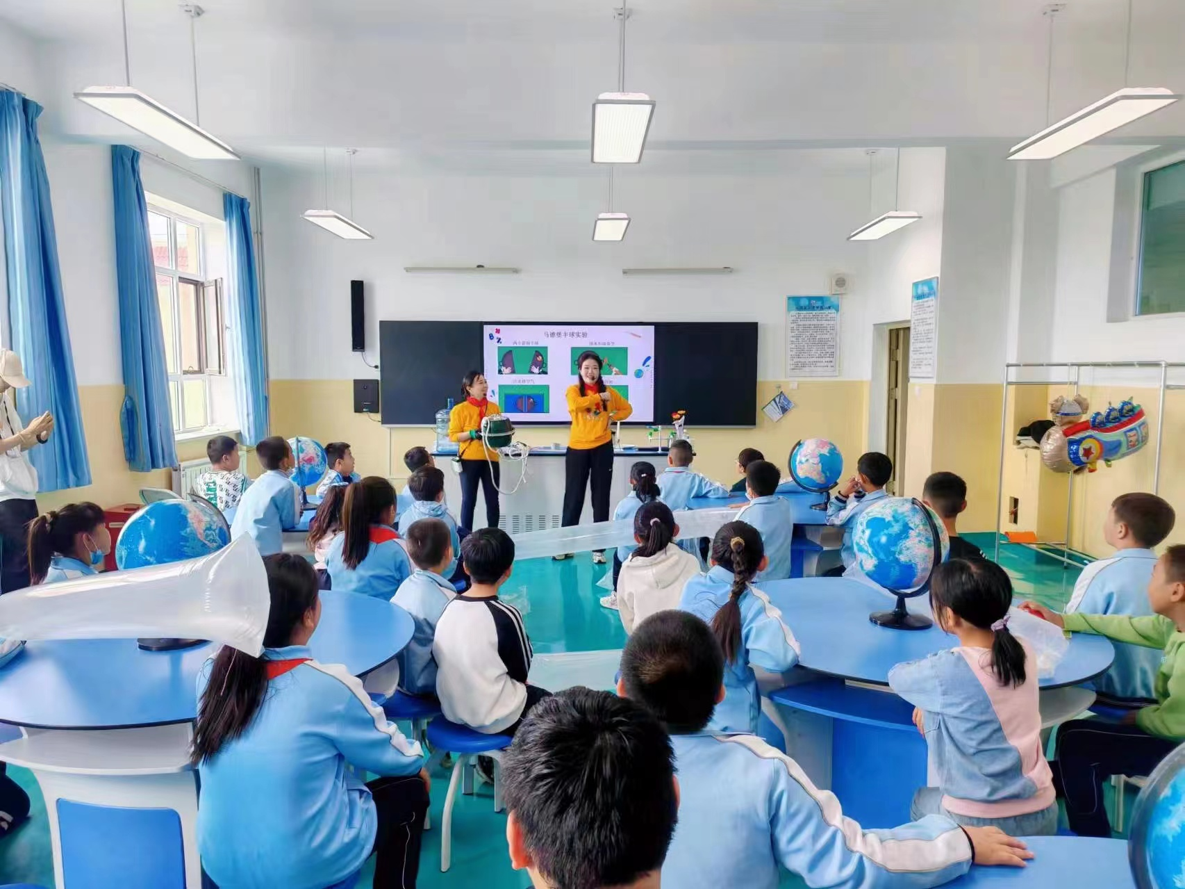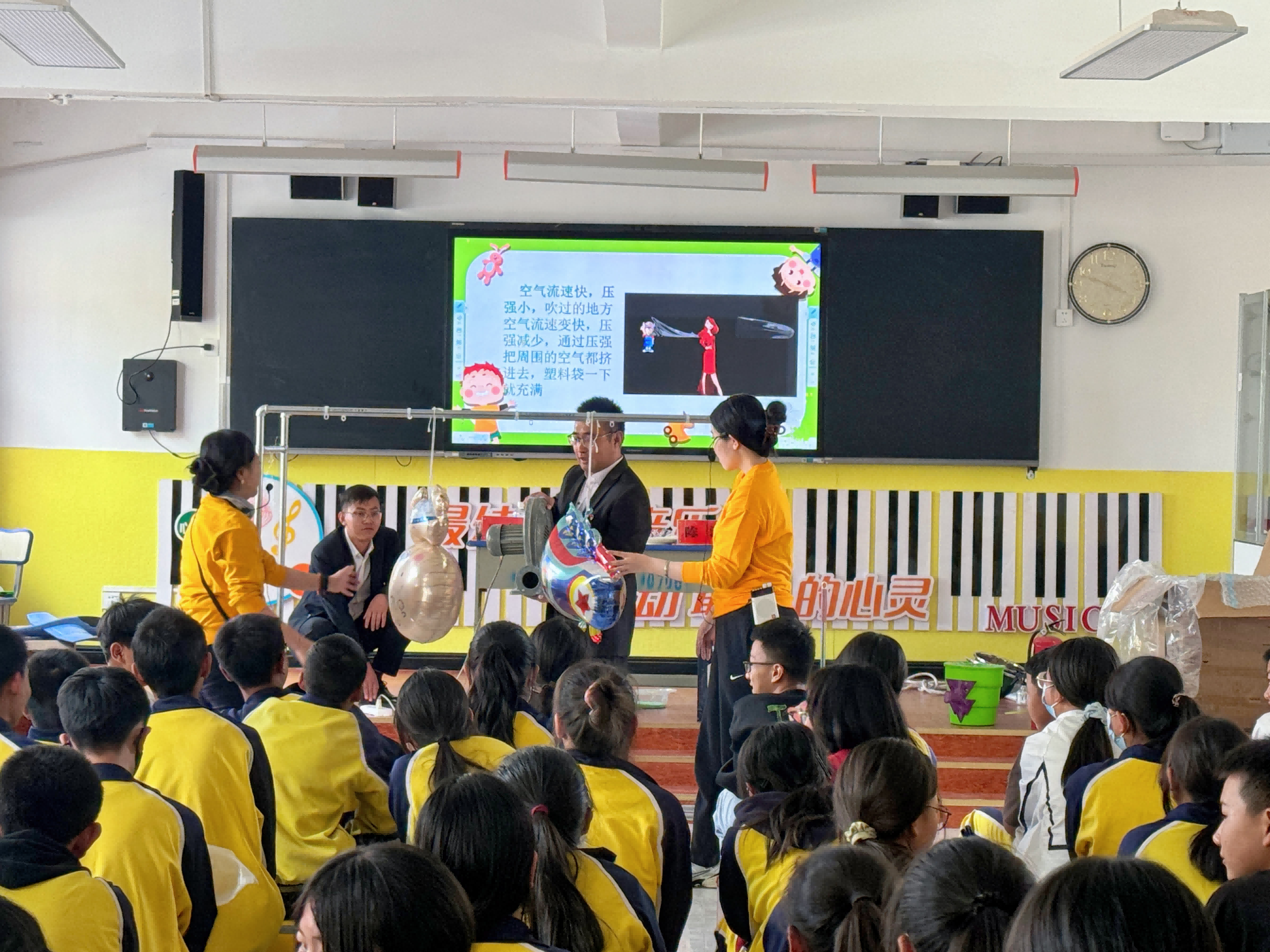 空气的力量有多大?活动现场,科普辅导员引导学生们带着问题进行互动实验,利用两个皮搋子模拟“马德堡半球实验”。尽管使出浑身解数,依旧无法将紧紧相吸的半球拉开,同学们啧啧称奇:“看来,空气才是真正的大力士呀!”