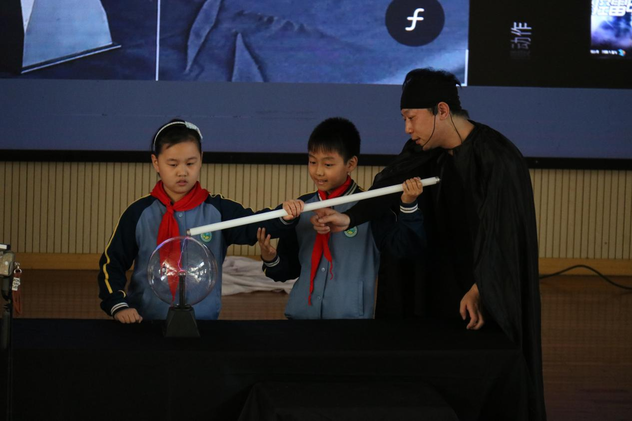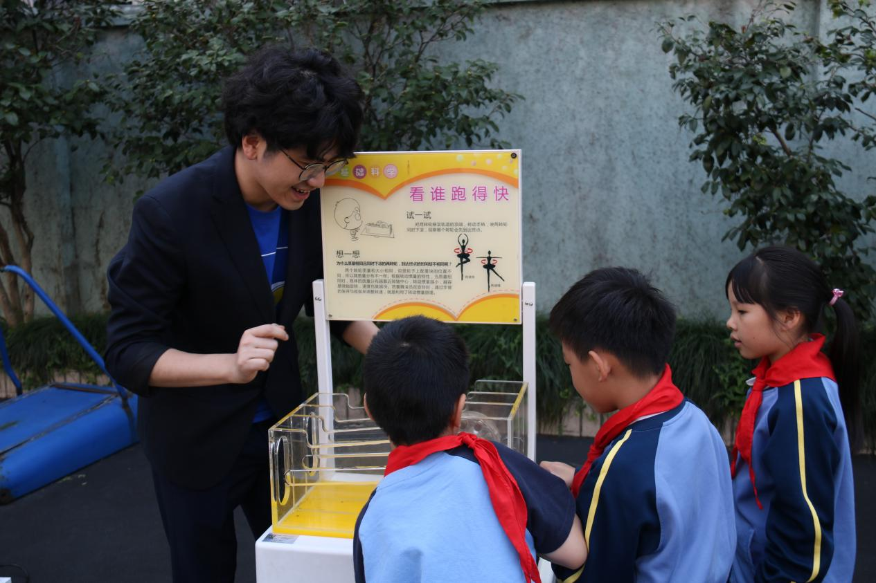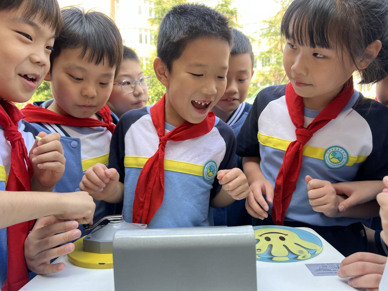 除了精彩的科普实验秀,科普大篷车的流动展品也在操场上就位。展品涵盖电、光、声、磁等多个科学领域的19件互动展品,孩子们在体验过程中,深刻感受到了科学的奥秘与乐趣。