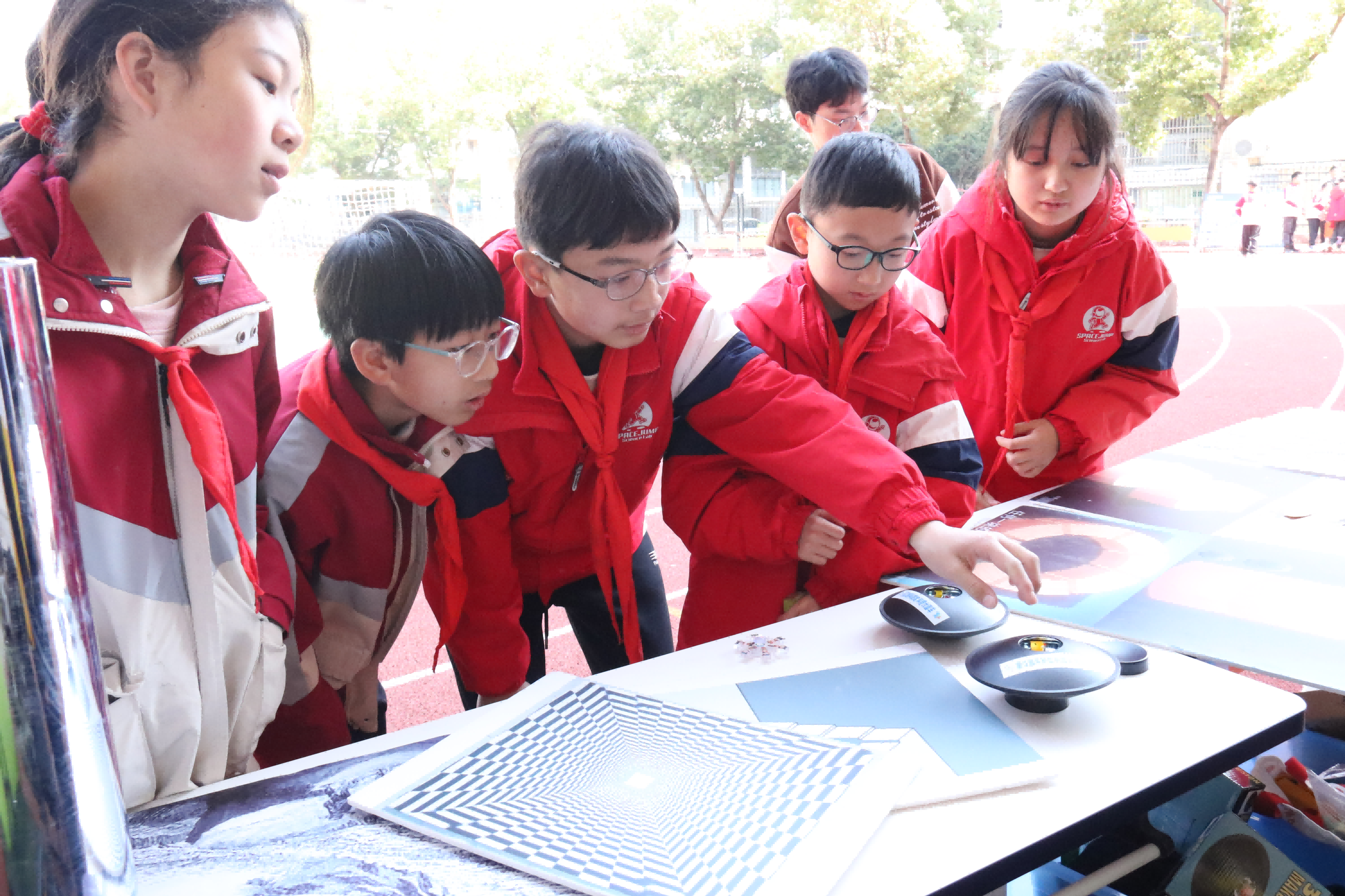 辅导员们通过变形艺术、贾斯特罗实验、抓不到的小鸭等科普活动,以趣味闯关的形式,引导学生们体验视错觉现象,通过生动地讲解,揭示了视觉皮层与现实世界之间的信息处理差异。当大脑遇到非常规信息时,大脑会激活“脑补机制”,导致错觉的产生。学生们在惊叹之余,也学会了用科学的视角看待生活中的奇妙现象。