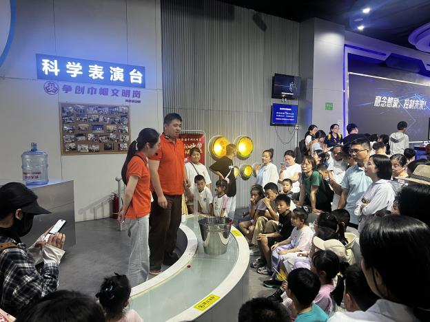 省科技馆立足科普教育核心场景,为实习生定制展厅导览、课程研发、活动执行等进阶式实践安排,建立“导师领航+学生共创”实践模式,由专业指导老师设计框架,帮助实习生独立完成科学活动落地,推动从理论向应用的逐步转化,并在科普创作、活动宣传及科学表演等多个方面取得优秀成果,充分展现了实践成效。