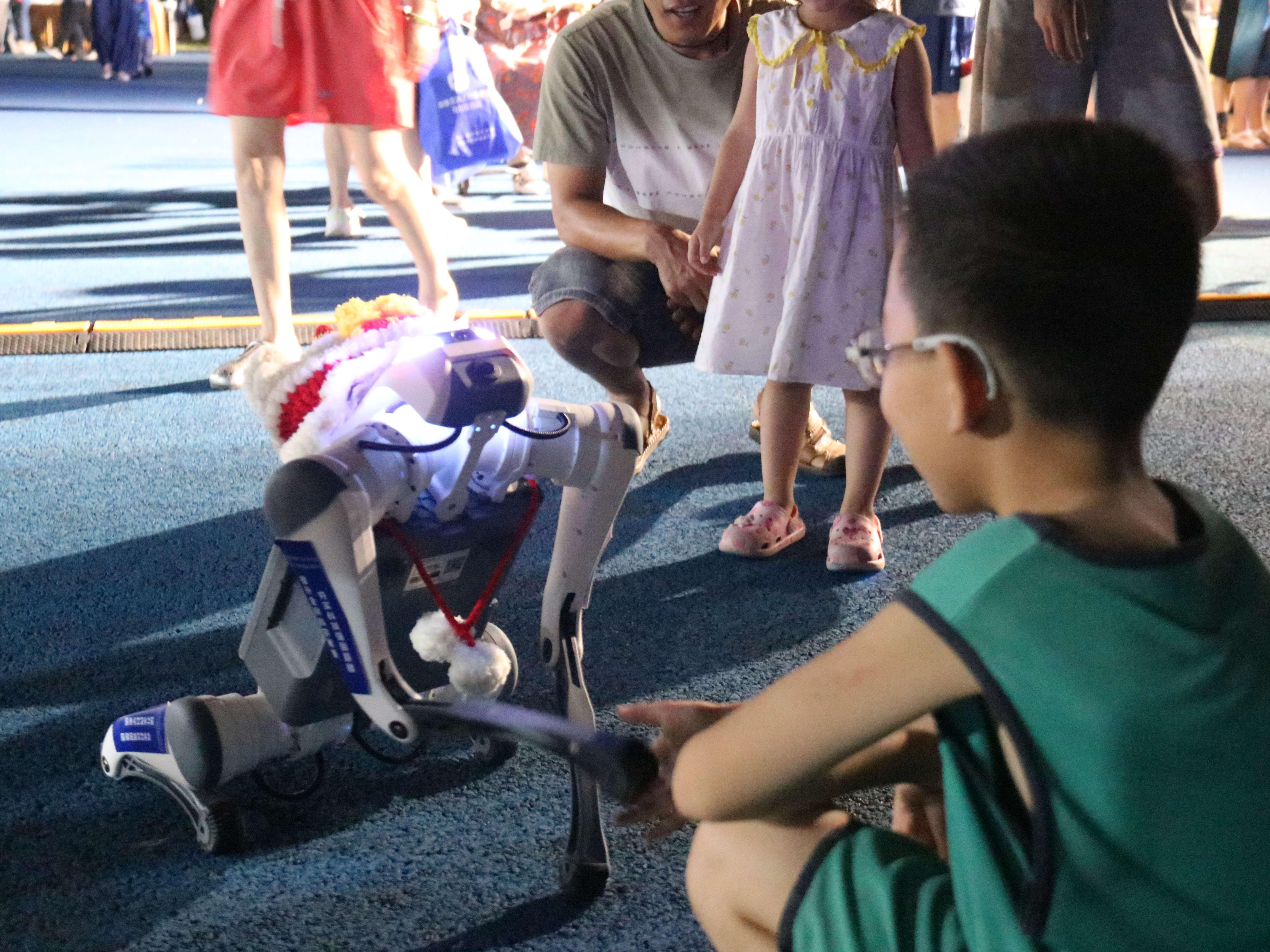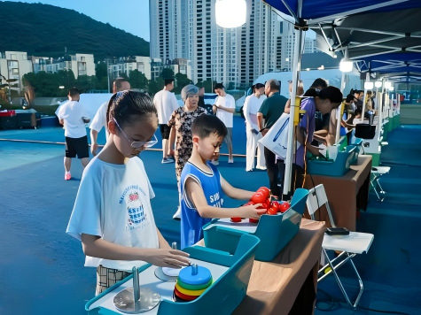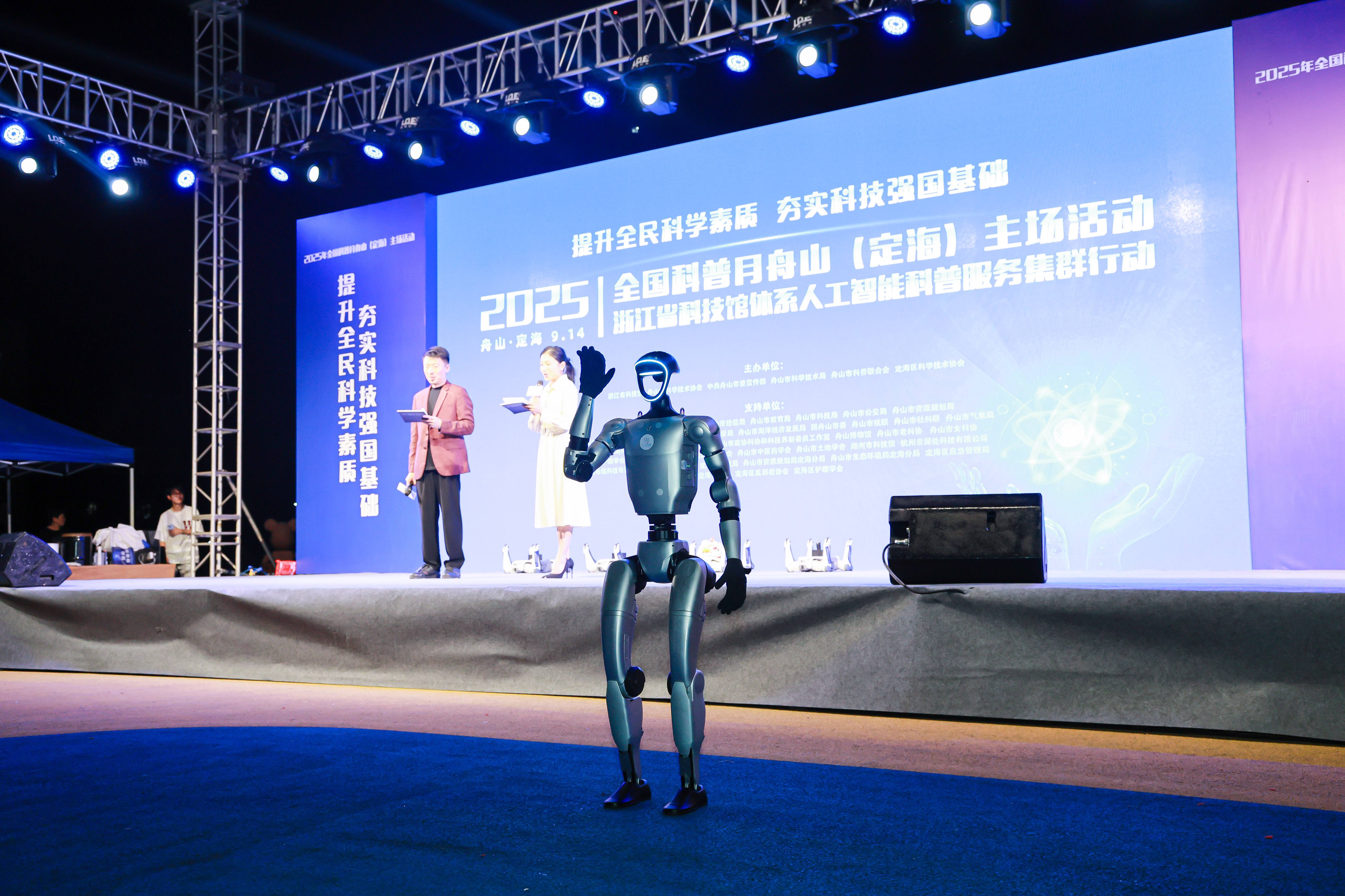 浙江省科技馆及舟山30余家单位、学会、协会在现场设摊,提供科普服务和体验项目。其中,大篷车流动展品在夜晚开放互动,人形机器人、机器狗、无人机等高科技设备吸引了大量市民驻足体验。