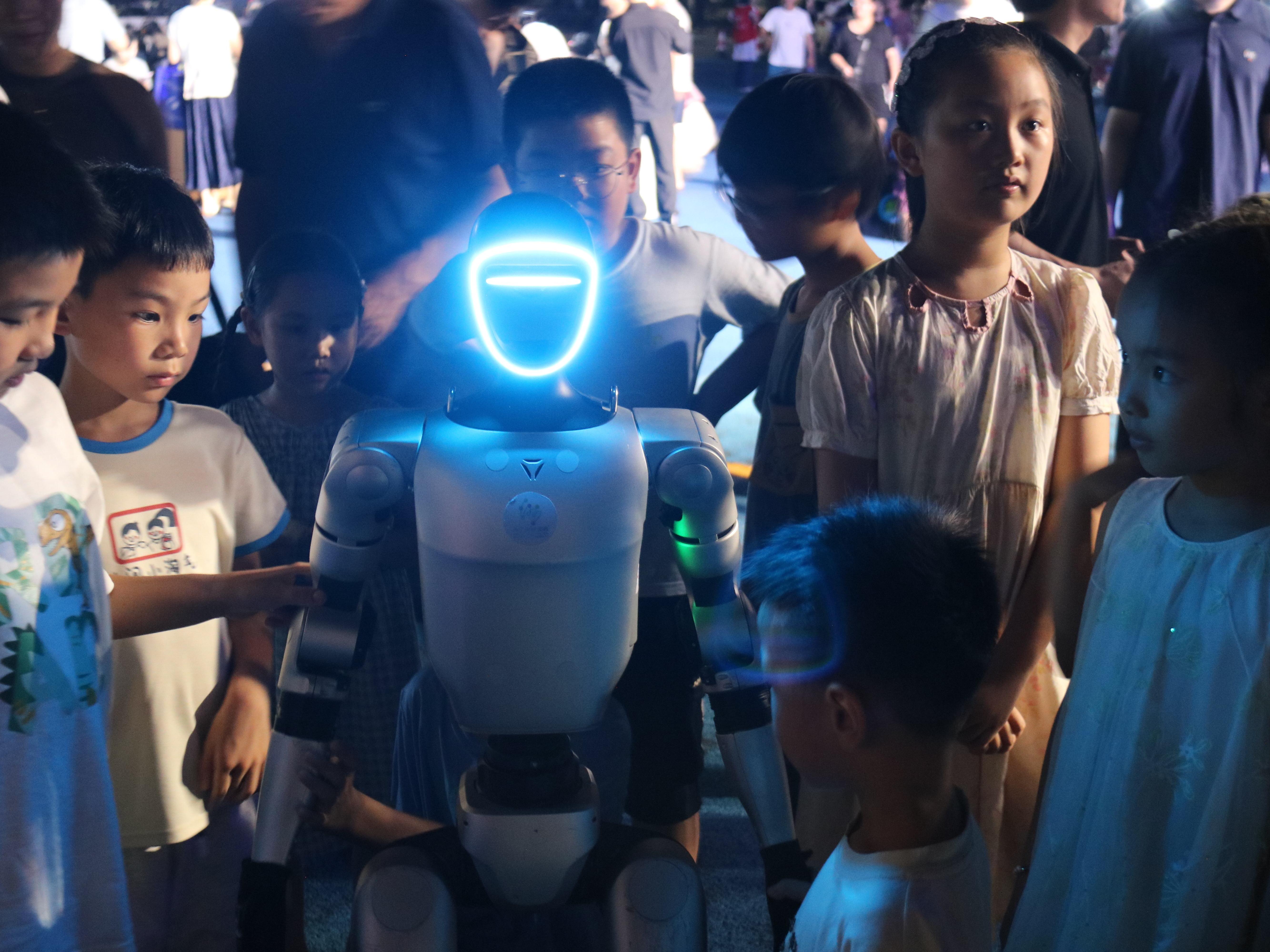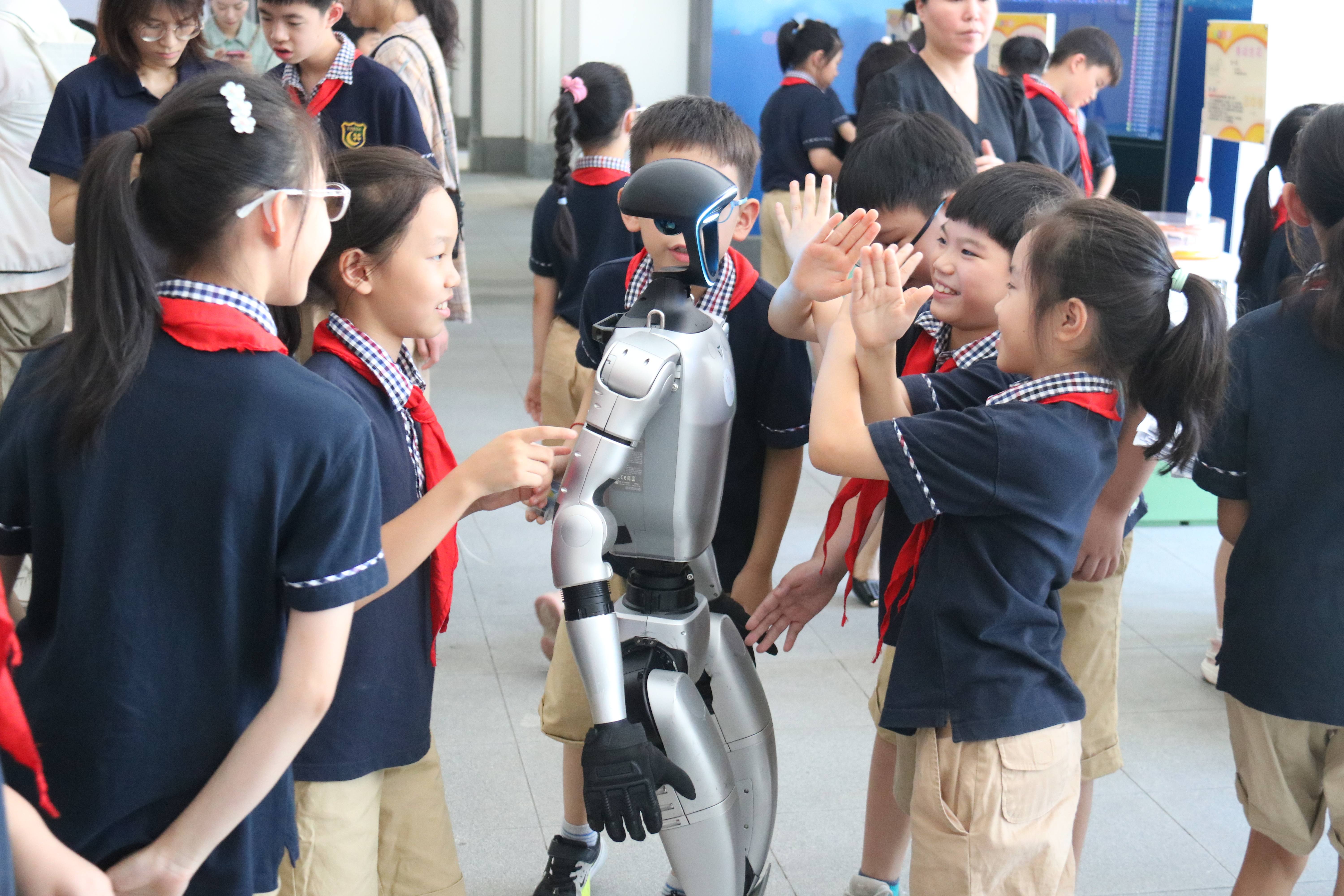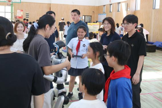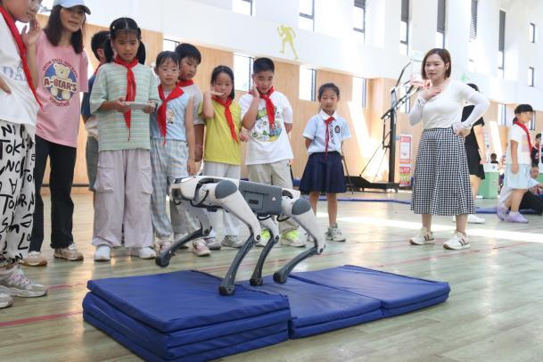 活动中,学生们围在“放置包裹”前比拼智慧;老师与同学们伸出双手与人形机器人进行拥抱互动;另一侧,机器狗正在进行爬楼梯的挑战,围观的学生们发出阵阵欢呼。通过形式丰富的人工智能科普体验与展示不仅开阔了孩子们的视野,也为海岛学生点亮了探索科学与创新的梦想。