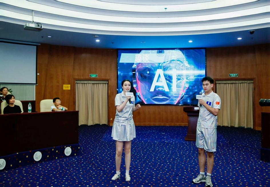 浙江省科技馆金牌科普辅导员团队带来的原创脱口秀《趣谈AI》成为全场首个亮点。
