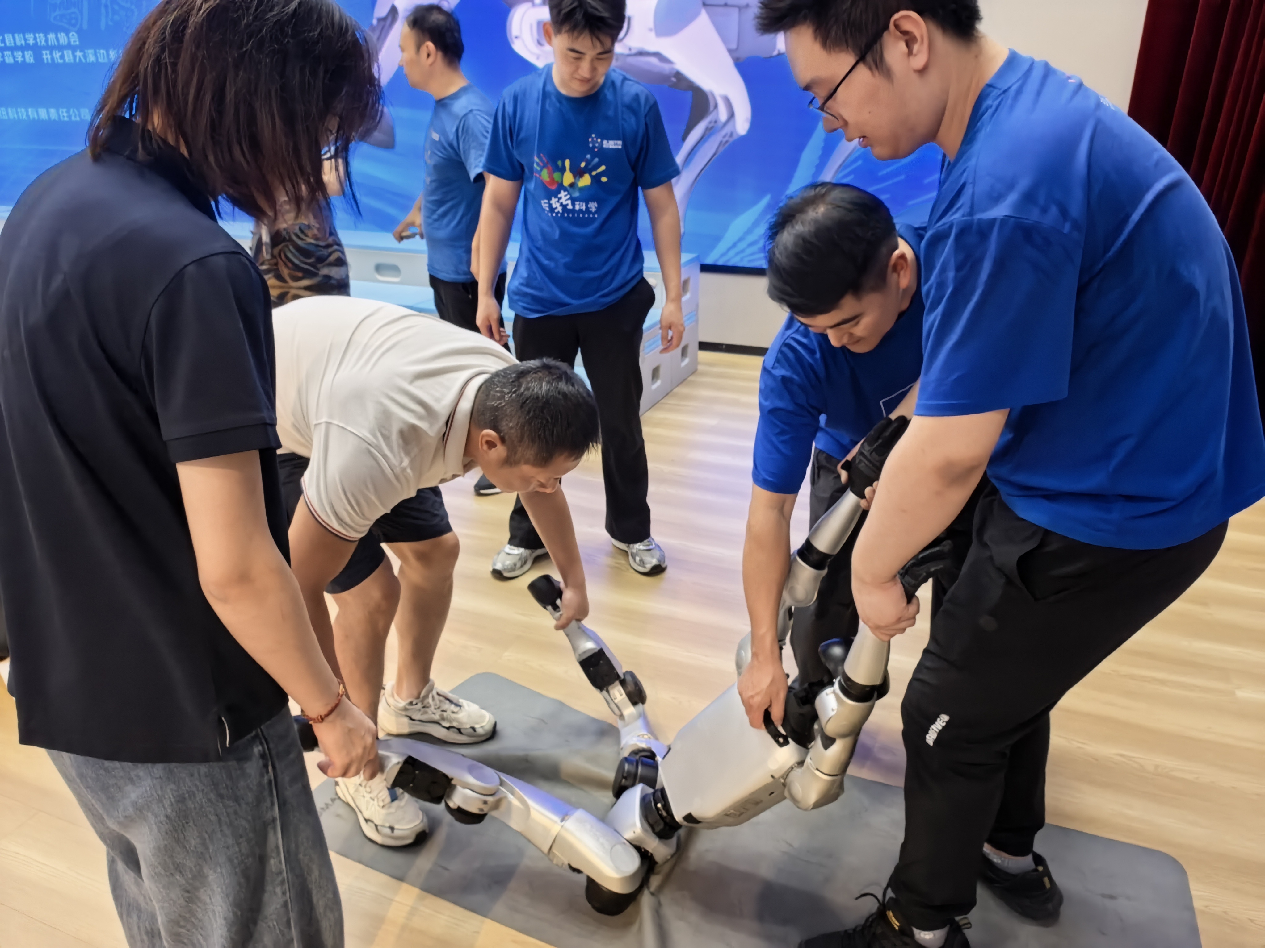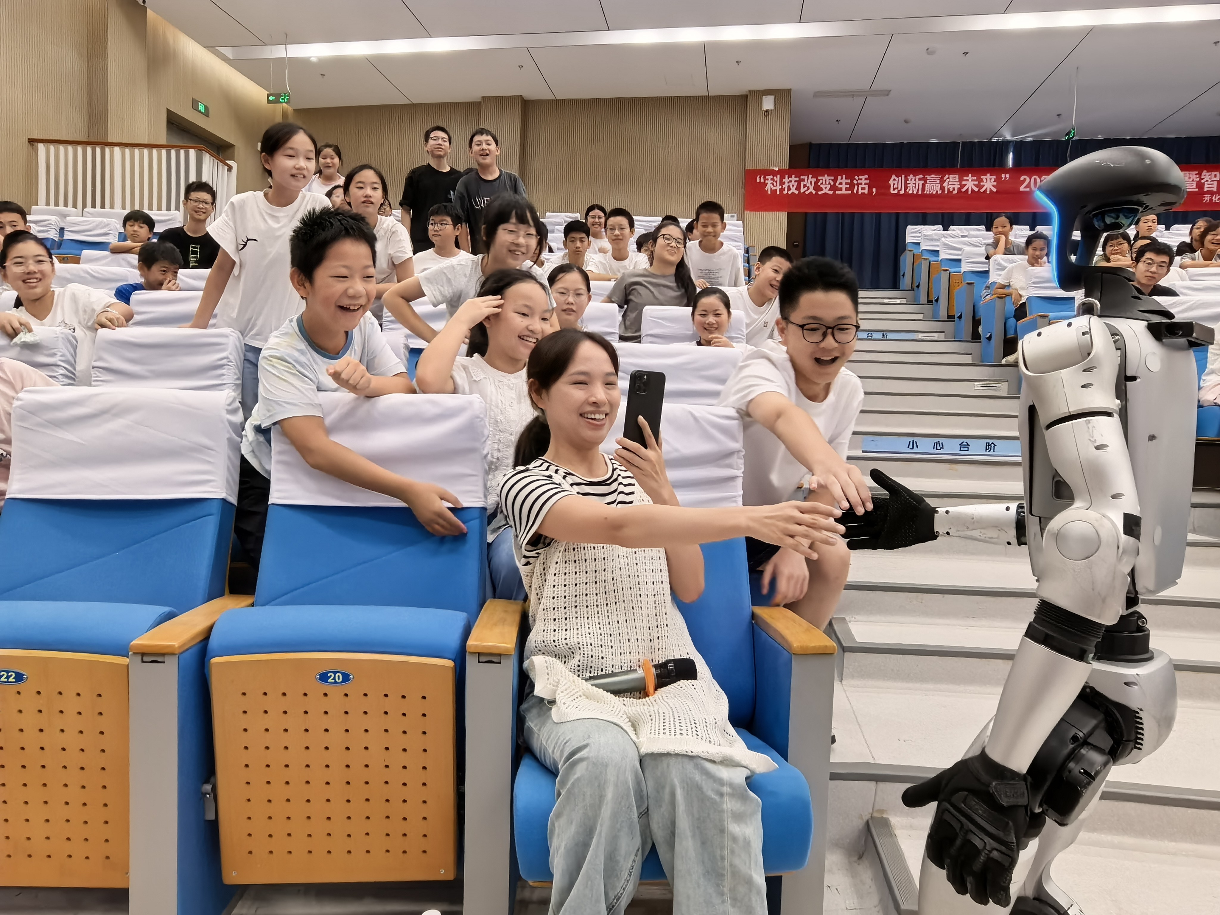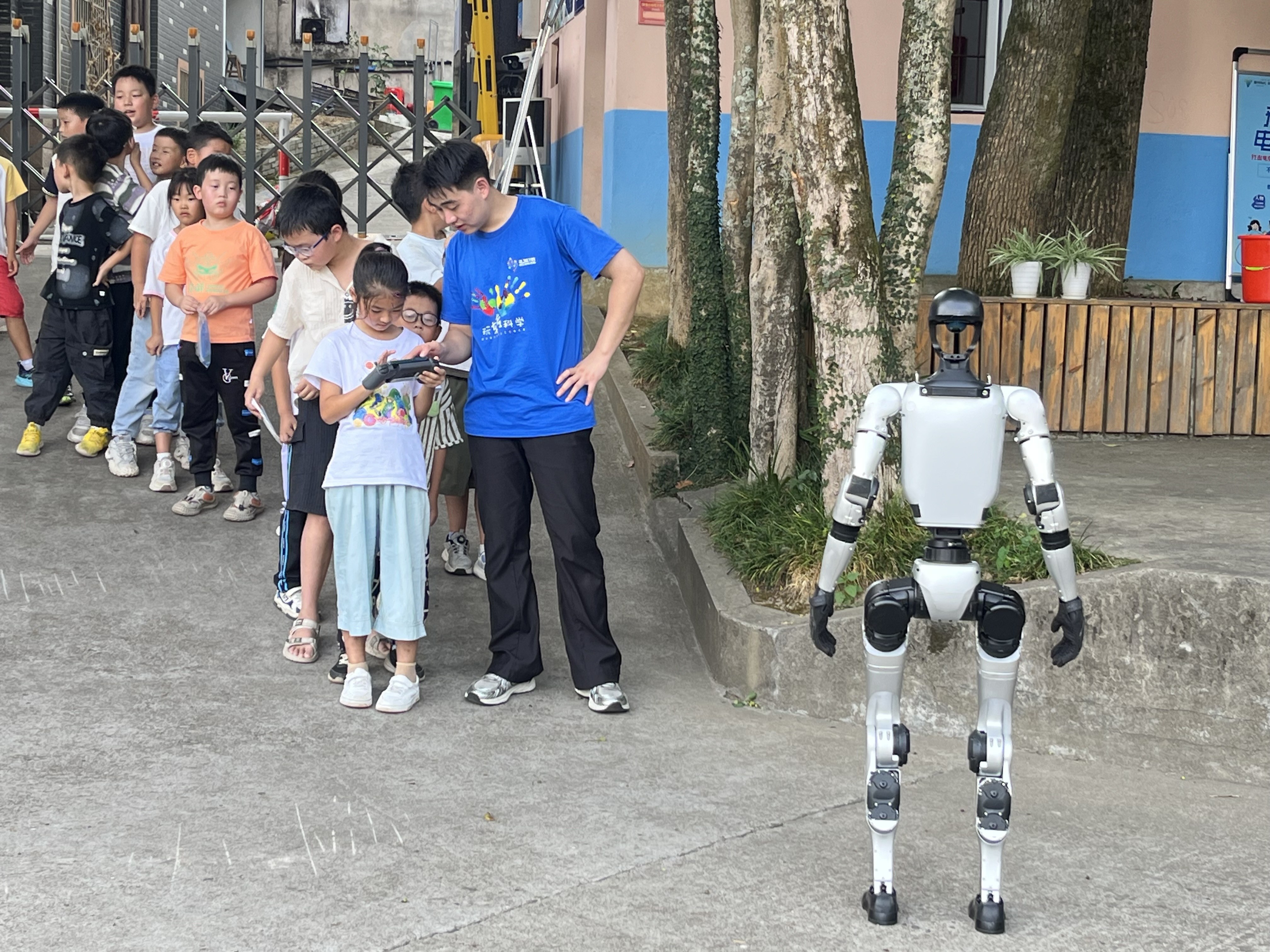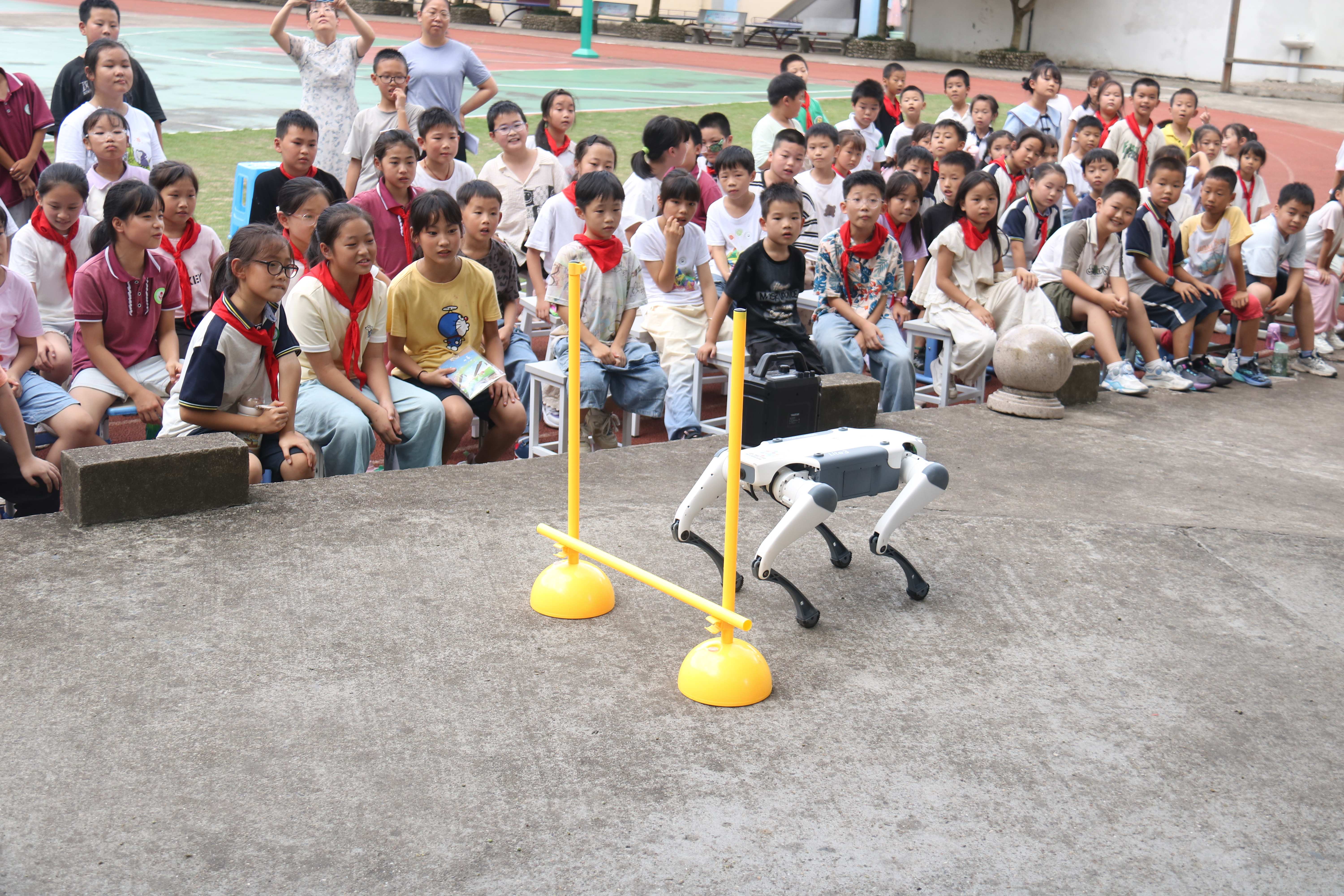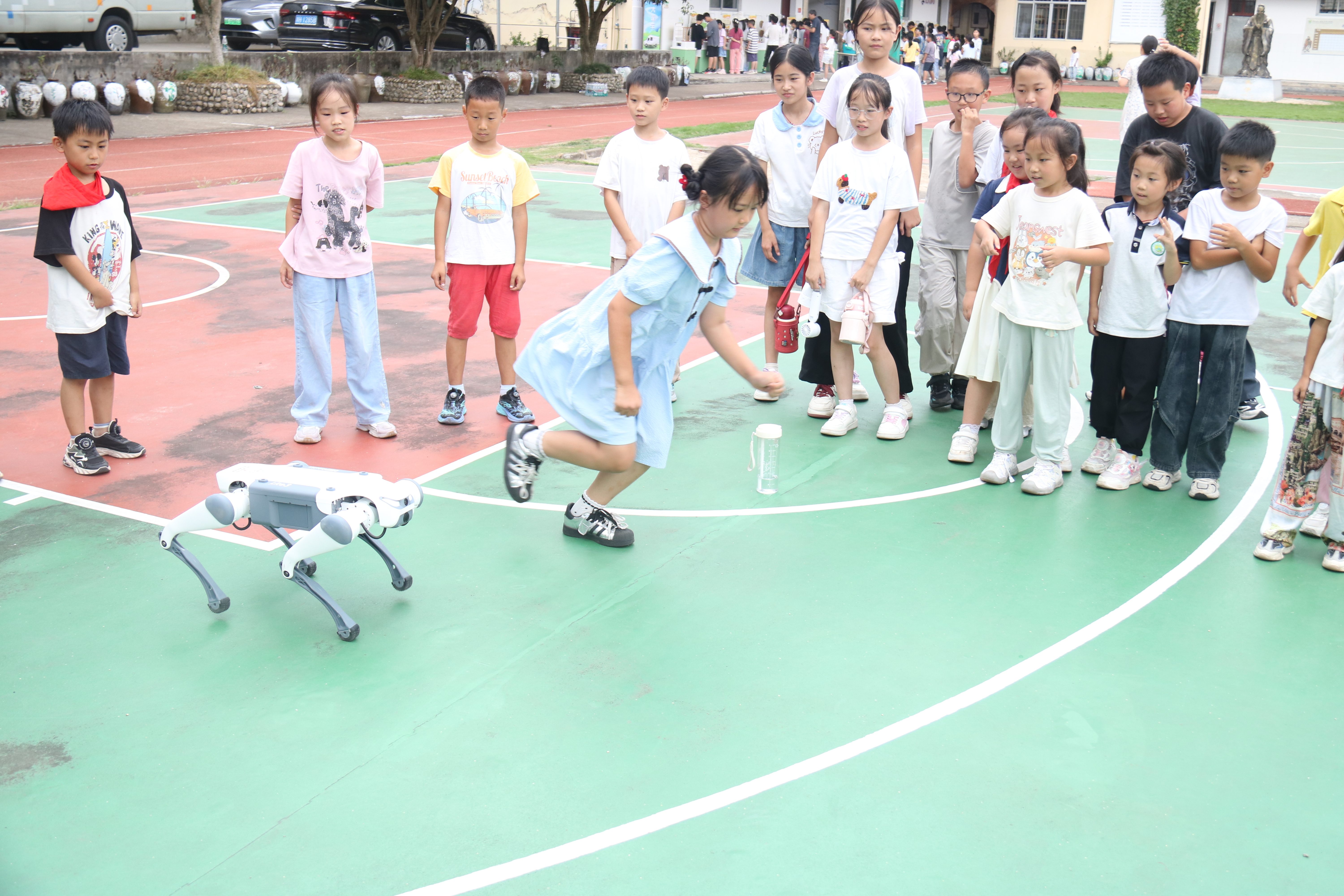 在开化县大溪边乡中心学校这所农村校园里,科技的温暖更显珍贵。无论是科普相声、AI表演还是大篷车展品互动,欢声笑语充斥着整个校园。孩子们零距离摸一摸可爱呆萌的机器狗,和小狗赛跑,还能在老师的指导下手把手地操作机器人,直呼过瘾。