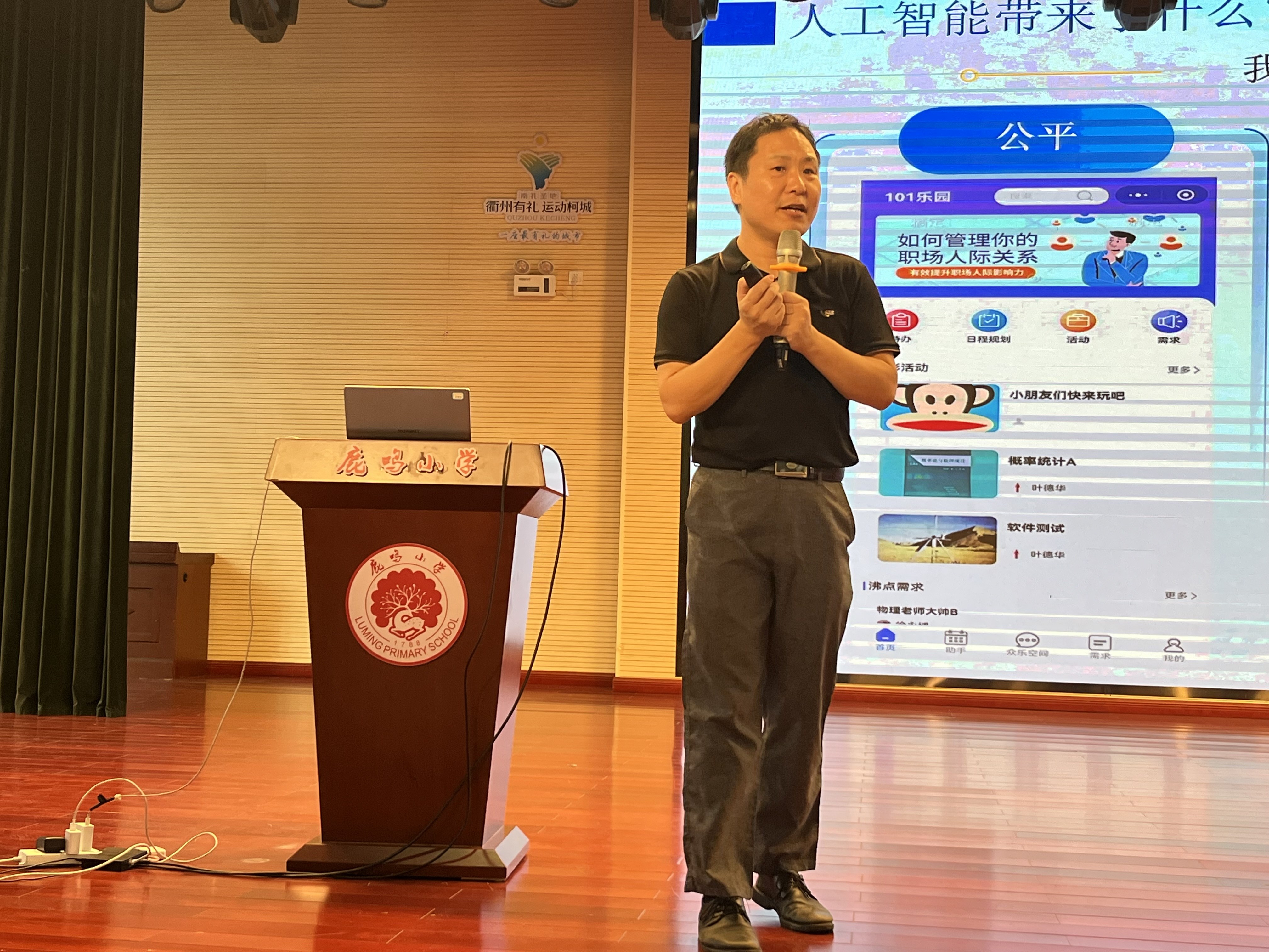“人工智能不是遥远的概念,而是能帮我们解决问题的好助手!”中科院宁波材料所客座教授、衢州学院教授、衢州无量科技有限公司创始人杨建辉,以《让人工智能成为我们的好助手》为题,从学生日常用品切入,拆解AI在学习生活中的应用,推动学生与前沿科技实现“零距离”接触,帮助理解人工智能如何持续改变生活、提升社会生产效率。