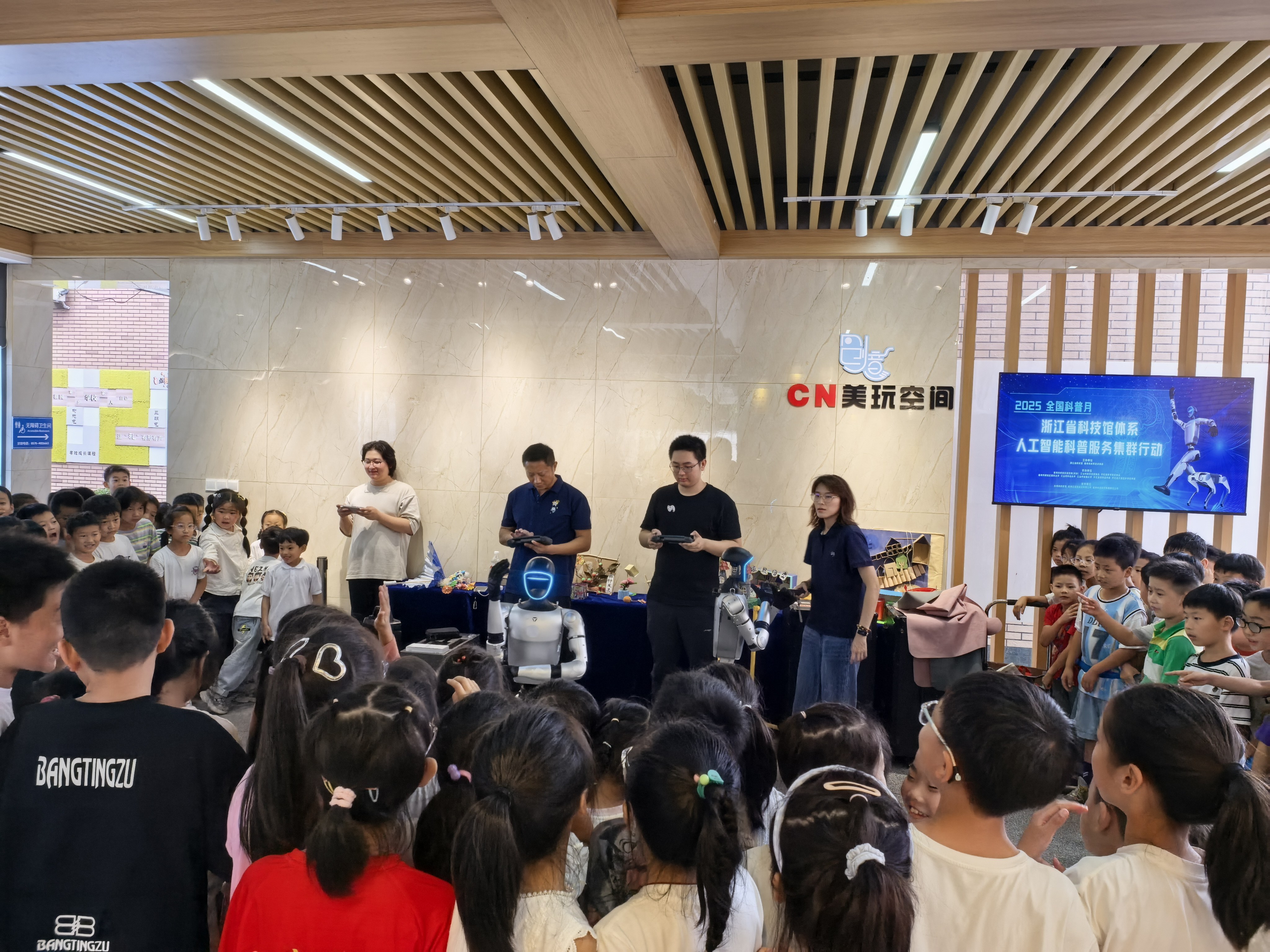 浙江省科技馆联合衢州市科协、台州市科技馆以及科技企业,组建专业科普服务队伍,以“省馆牵头、多馆联动、资源下沉”的模式,为山区孩子量身打造了“讲座+表演+互动+巡展”的立体化科普体验,让前沿AI知识走出展厅,走进孩子们的课堂与课间。