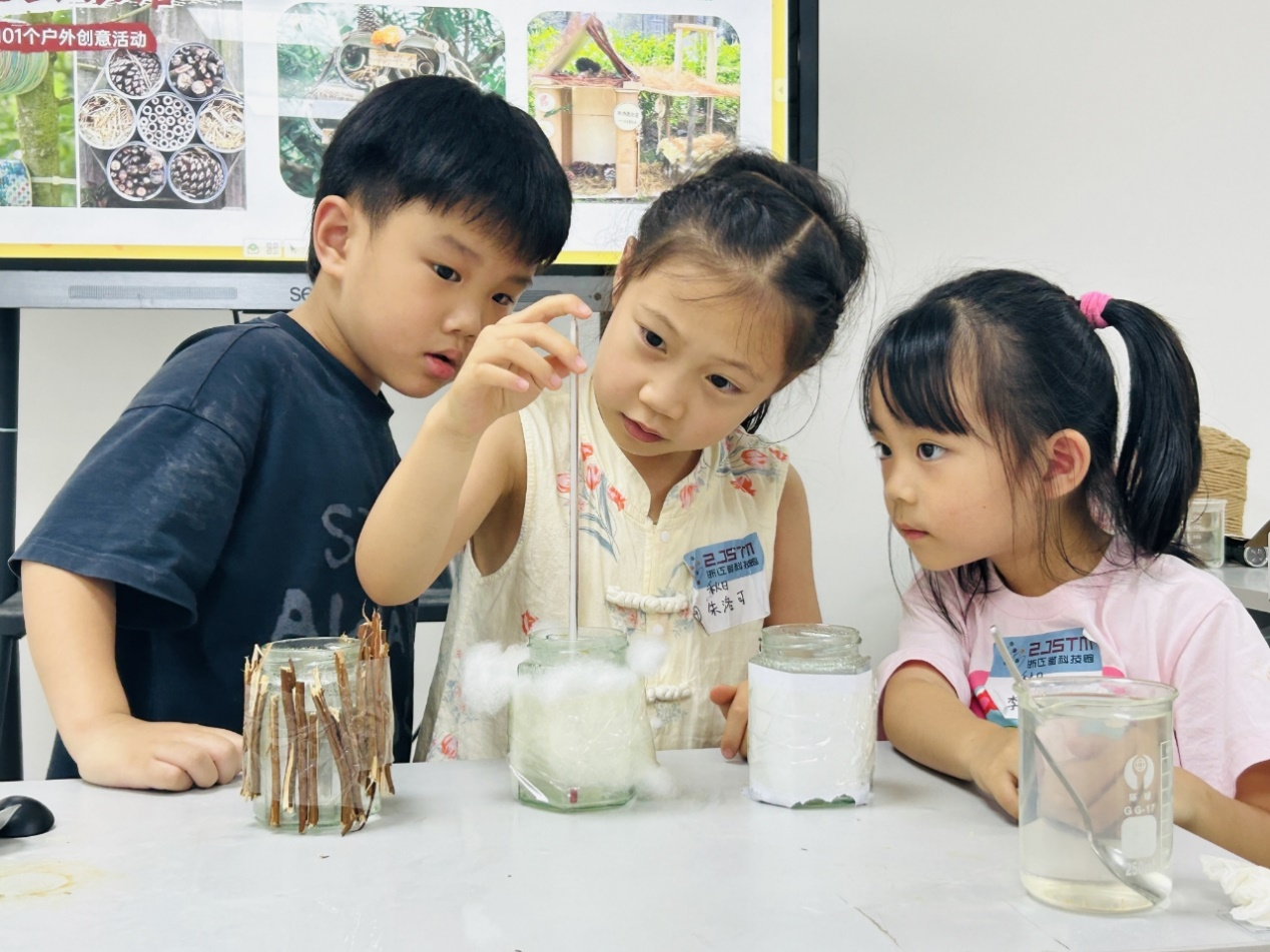 “小小生物探索家”主题营中,学员们耐心蹲守,细致绘制生物地图;“闪闪魔法见习班”学员面对奇幻化学现象发出阵阵惊叹;“新锐机甲师”活动中孩子们围绕沙盘研讨战术、调试机甲;“瓶添电力”课程里,大家互相协作成功制作出环保充电宝后露出自豪的笑脸;“科学小侦探的光线追凶” 现场,小侦探们依托光学原理推理取证,全程沉浸于动手与思辨的探索中。在亲手制作、团队协作与自主探究中,孩子们学习了丰富的科普知识,感受到了科学的魅力,并锻炼了动手能力 。