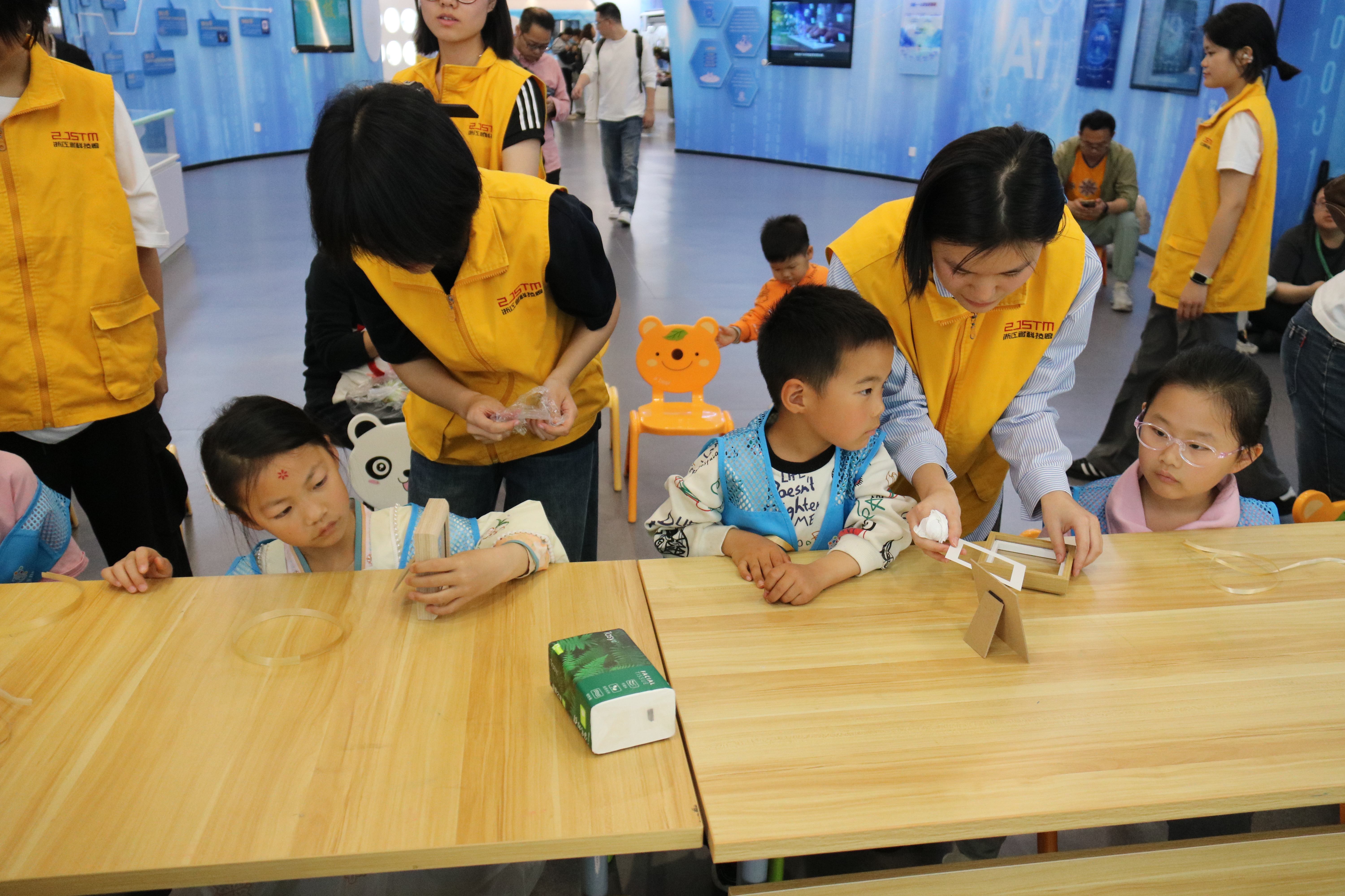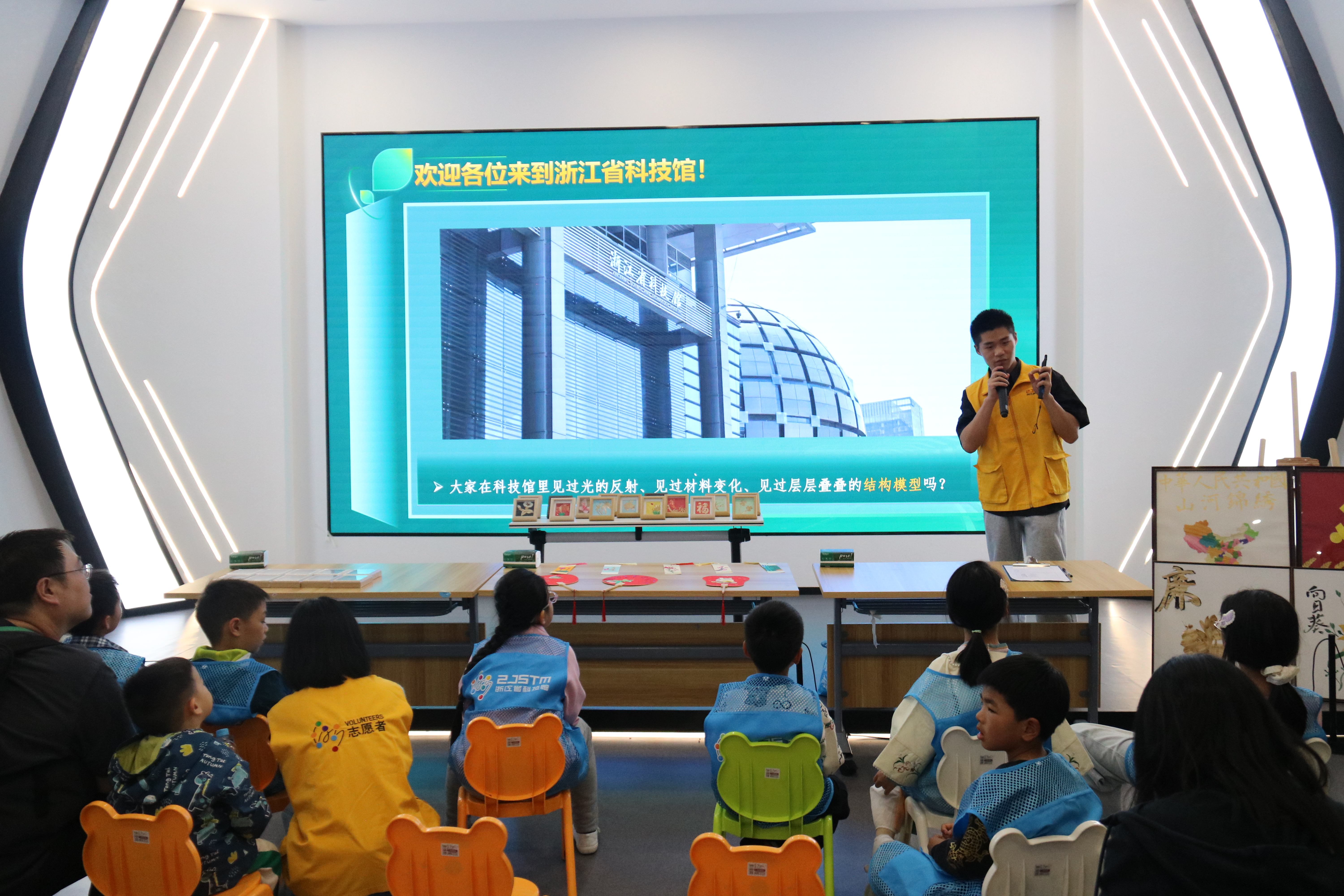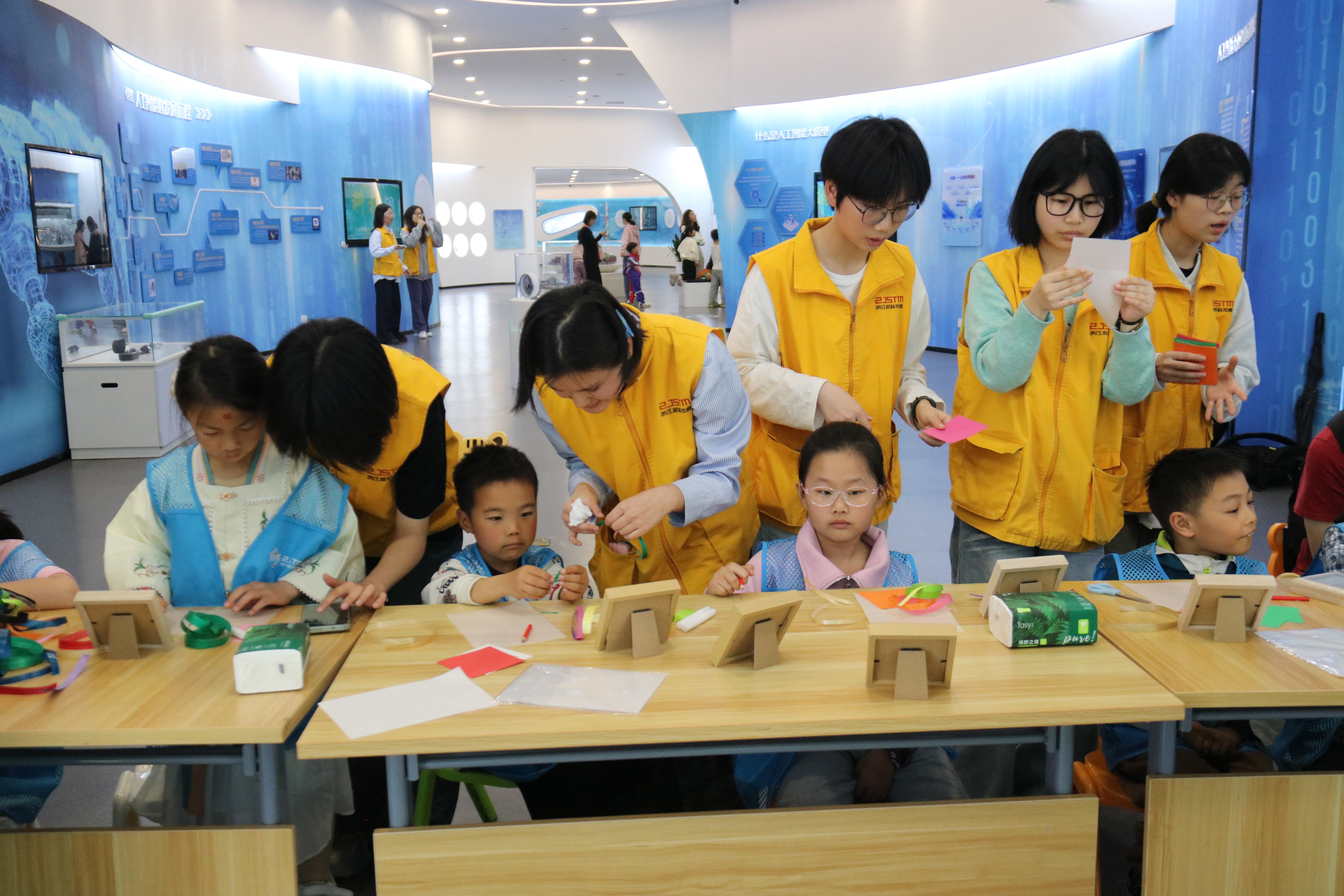 近日,浙江警官职业学院的志愿者们走进浙江省科技馆新质生产力展区,开展了一场别开生面的科普活动,带来了一堂集趣味性、知识性、实践性于一体的非遗科技课堂,让孩子们在指尖灵动间感受传统文化的魅力,在探索实践中触摸科学的奥秘。