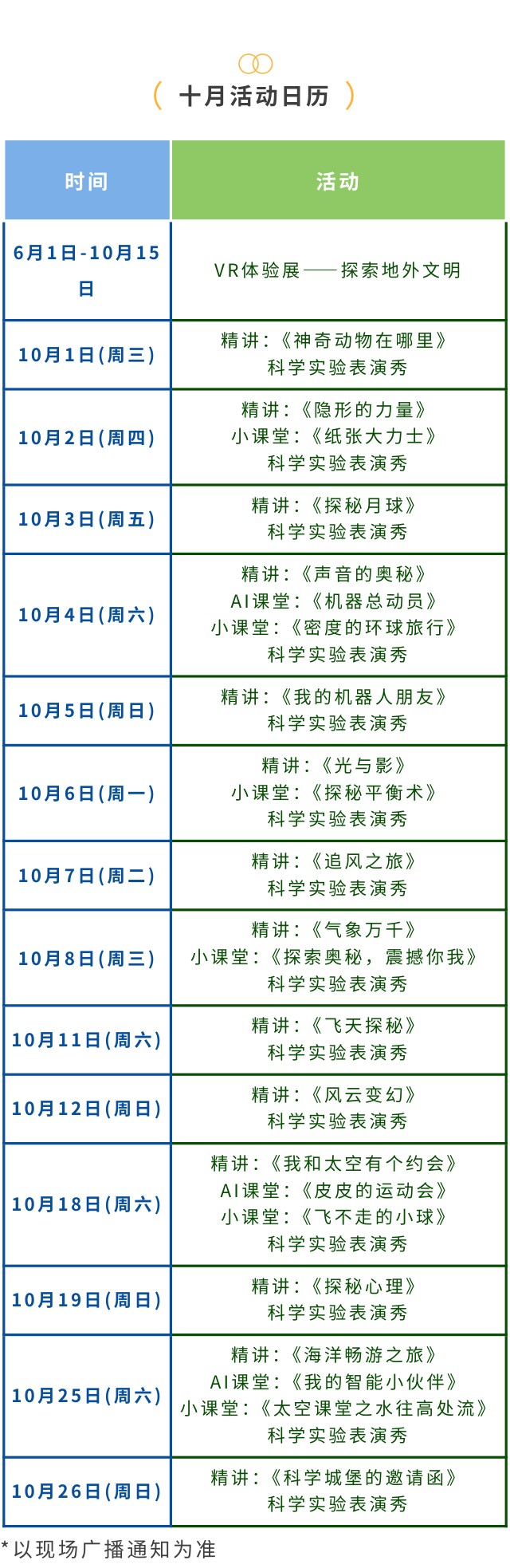 活动预告 | 浙江省科技馆十月活动日历