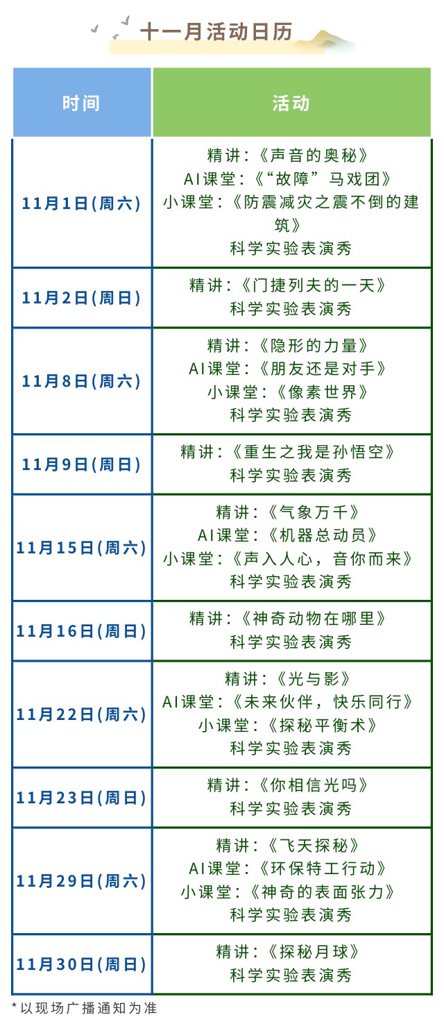 活动预告 | 浙江省科技馆十一月活动日历