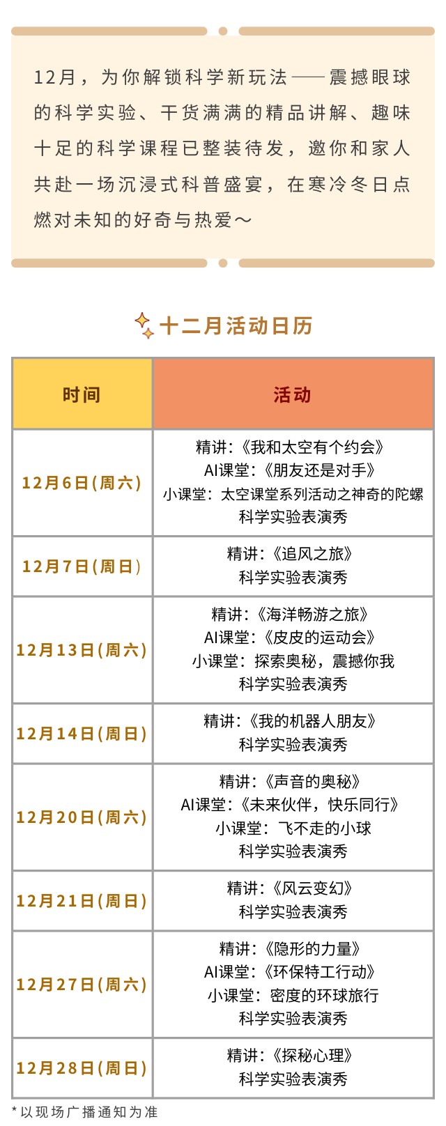 活动预告 | 浙江省科技馆十二月活动日历