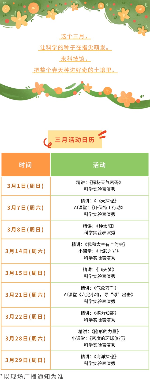 活动预告 | 浙江省科技馆三月活动日历