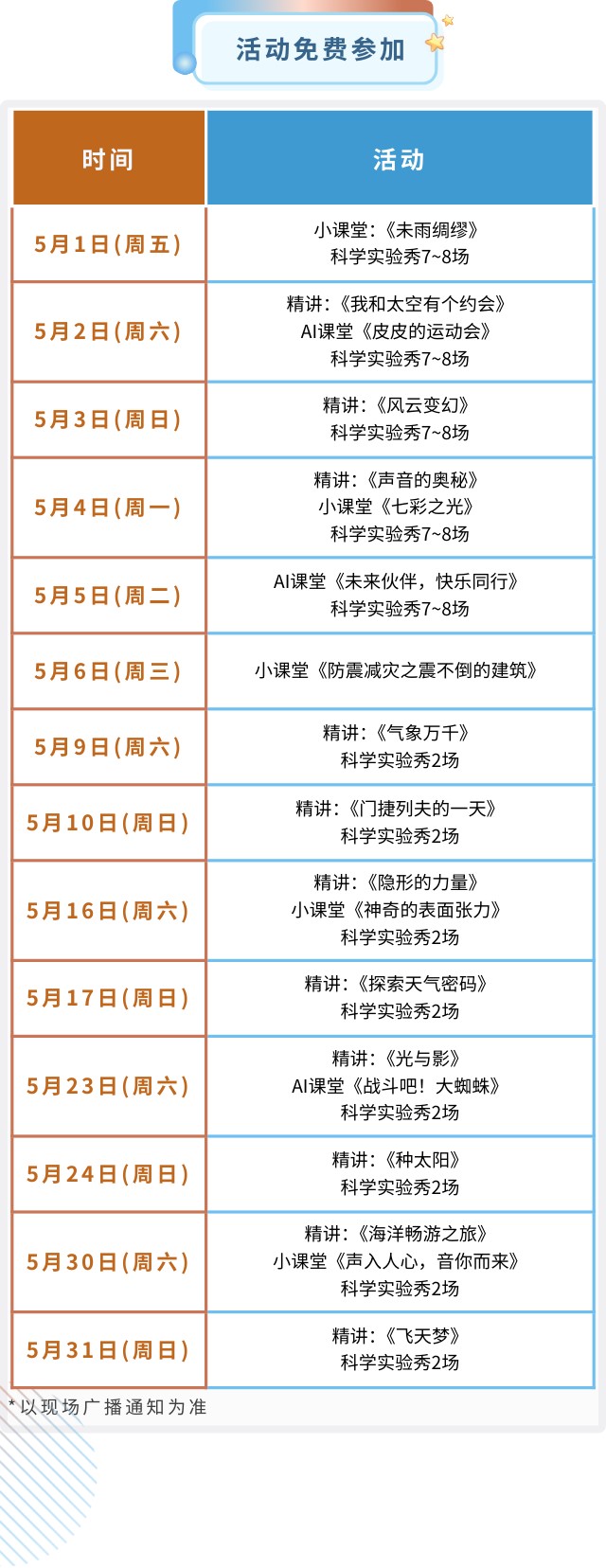 活动预告 | 浙江省科技馆五月活动日历