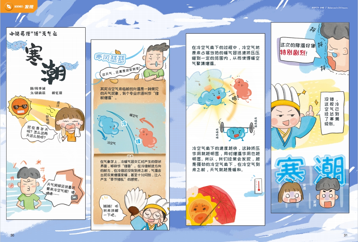 栏目内容为自然科学各学科领域的基础研究和应用基础研究方面的较高水平、有创造性和重要意义的研究成果。一般选题主要集中在天文、航空航天、生物工程、军事科技、人工智能等多个领域。在今年的改版中,栏目新增的“小诸葛漫‘话’天气”专栏,是杂志与浙江省气象局携手打造。专栏以漫画的形式、风趣幽默的文字阐释气象小知识,更适合青少年读者阅读。