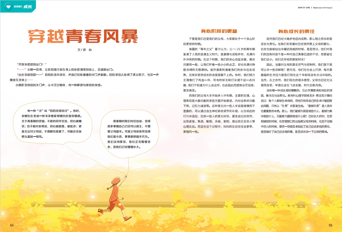 此次改版,是《科学24小时》的一次“自我提升”,意在进一步增强杂志的可读性,通过调整杂志的栏目设置,调节阅读节奏,以提高读者的阅读体验,更好地为青少年进行科普服务。