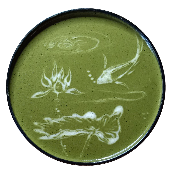 从科学的角度来说,点茶实际上与现代搅拌机和打蛋器的原理相似。我们可以将做茶汤的茶粉理解为不易溶于水的微小固体颗粒,当这些颗粒受到外界搅打而均匀地悬浮于水中时就会形成悬浊液。通过快速搅拌,使悬浊液中均匀地混入空气来增加其稳定性,又因悬浊液具有表面张力,所以浮于表层的泡沫能够维持一段时间,也正是这段时间,为作画创造了机会。