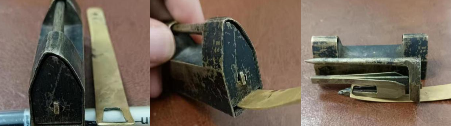 因此,古铜锁的防盗性能还是相当可靠的。不过,防盗性能差的古铜锁也有,比如“l形”“一字形”这类钥匙孔配合两簧型锁芯的古铜锁,用发簪等工具确实也能打开。但绝大多数古铜锁的防盗性能相当强大,比如“迷宫锁”,就算我们拿到钥匙,如果没有掌握开锁的方法,想把钥匙插到钥匙孔里都有困难。