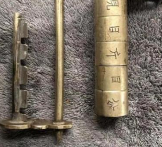 密码锁也称为“诗文锁”,多为文人墨客使用,它的锁壳一般由5个刻有汉字的转环(环内有一缺口)构成,锁芯上没有簧片只有各种缺口。开锁时,转动各个转环组成特定的诗句,使各环缺口和锁芯的缺口完全对应,从而把锁打开。