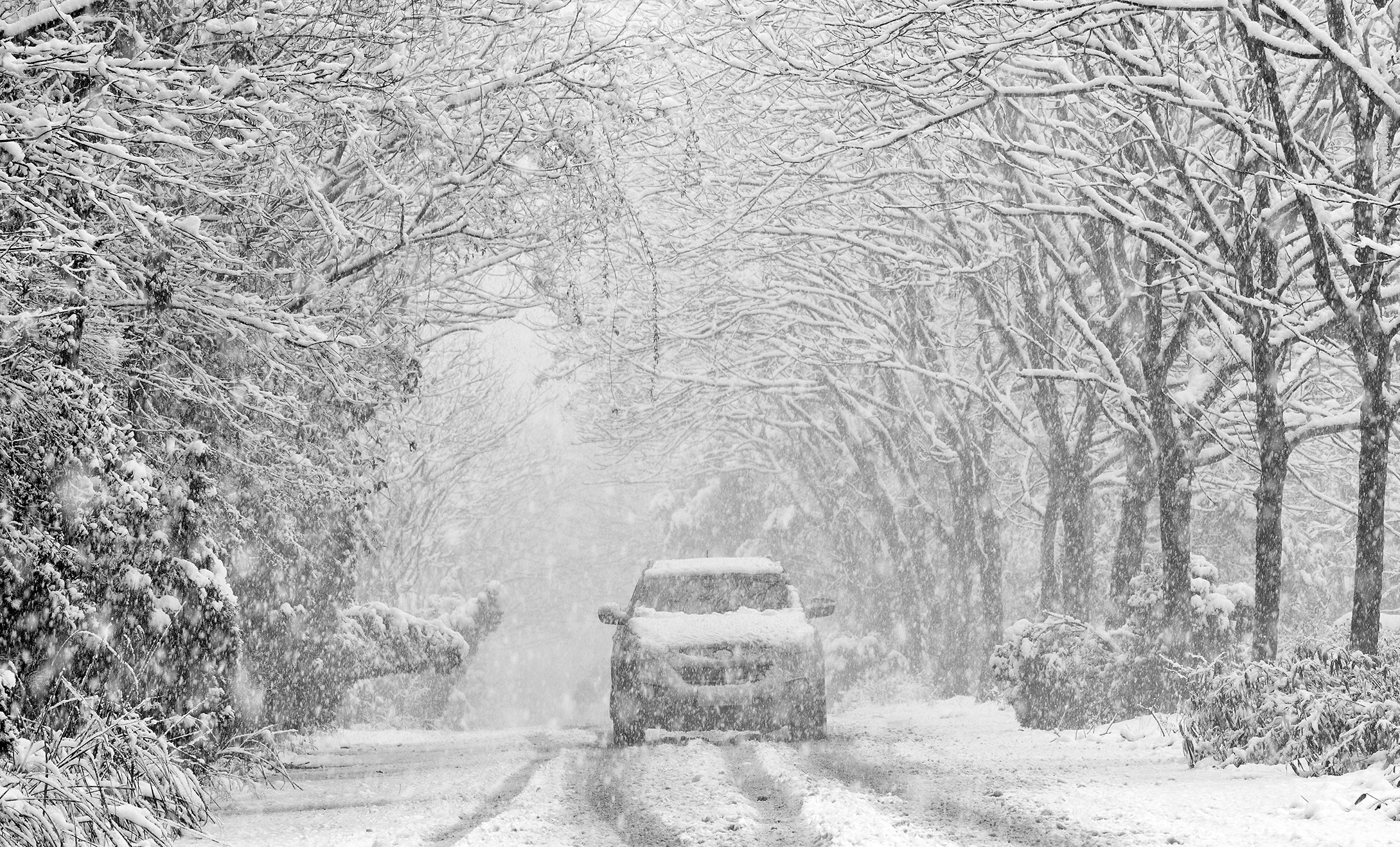 2016年1月22日,浙江北部普降大雪,极度寒潮来袭,图为一辆归途汽车在风雪中艰难前行